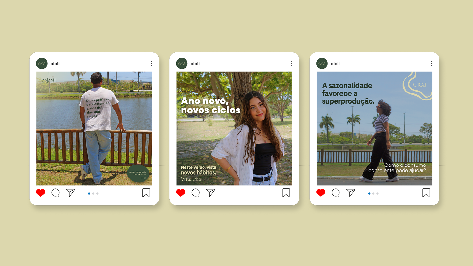 A Cicli é um brechó sustentável que utiliza a moda de segunda mão como ferramenta de transformação. O projeto envolveu a criação completa da marca, da estratégia ao visual, com foco em consumo consciente e educação.