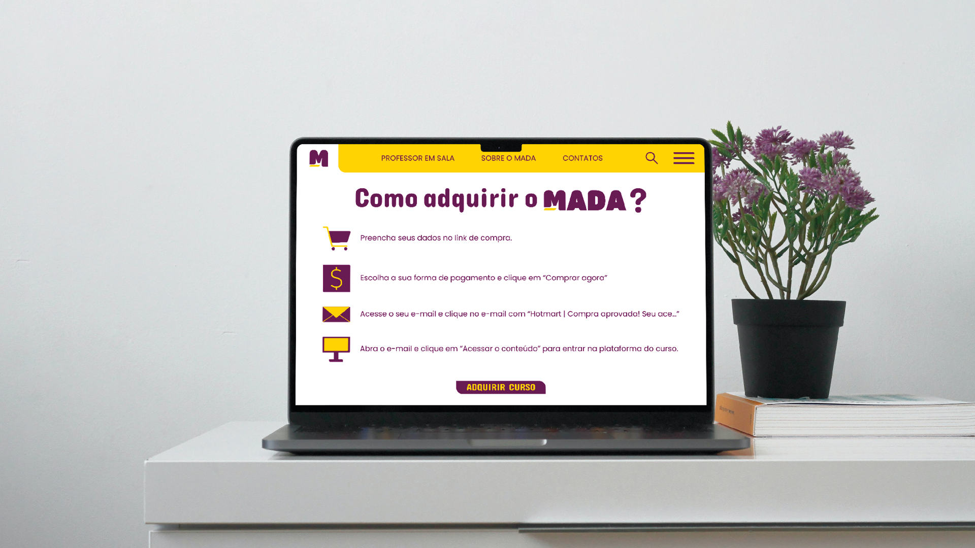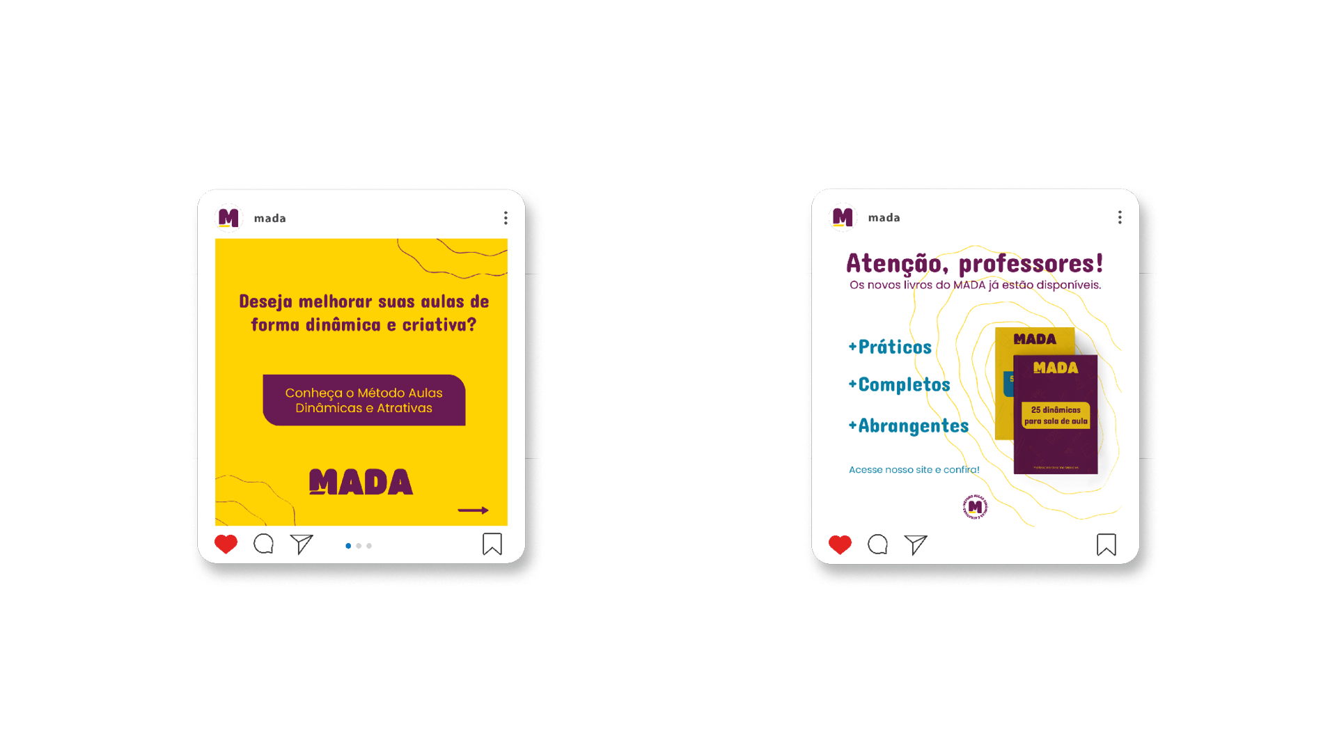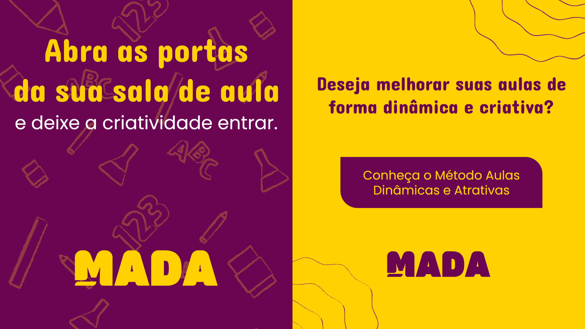 MADA - Método Aulas Dinâmicas e Atrativas - é um curso no formato de assinatura que oferece a professores do nível básico ferramentas e recursos práticos para tornar suas aulas mais criativas, envolventes e eficazes, através de materiais centrados em dinâmicas e jogos. Com conteúdos abrangentes, contém módulos que que incluem explicações sobre o método, estratégias específicas para cada ano escolar e planejamentos, além de acesso a lives privadas.