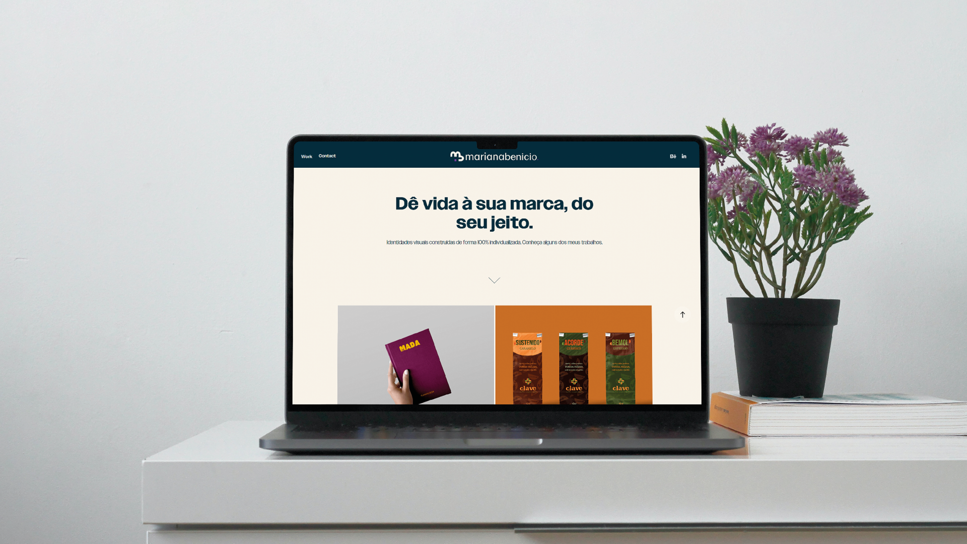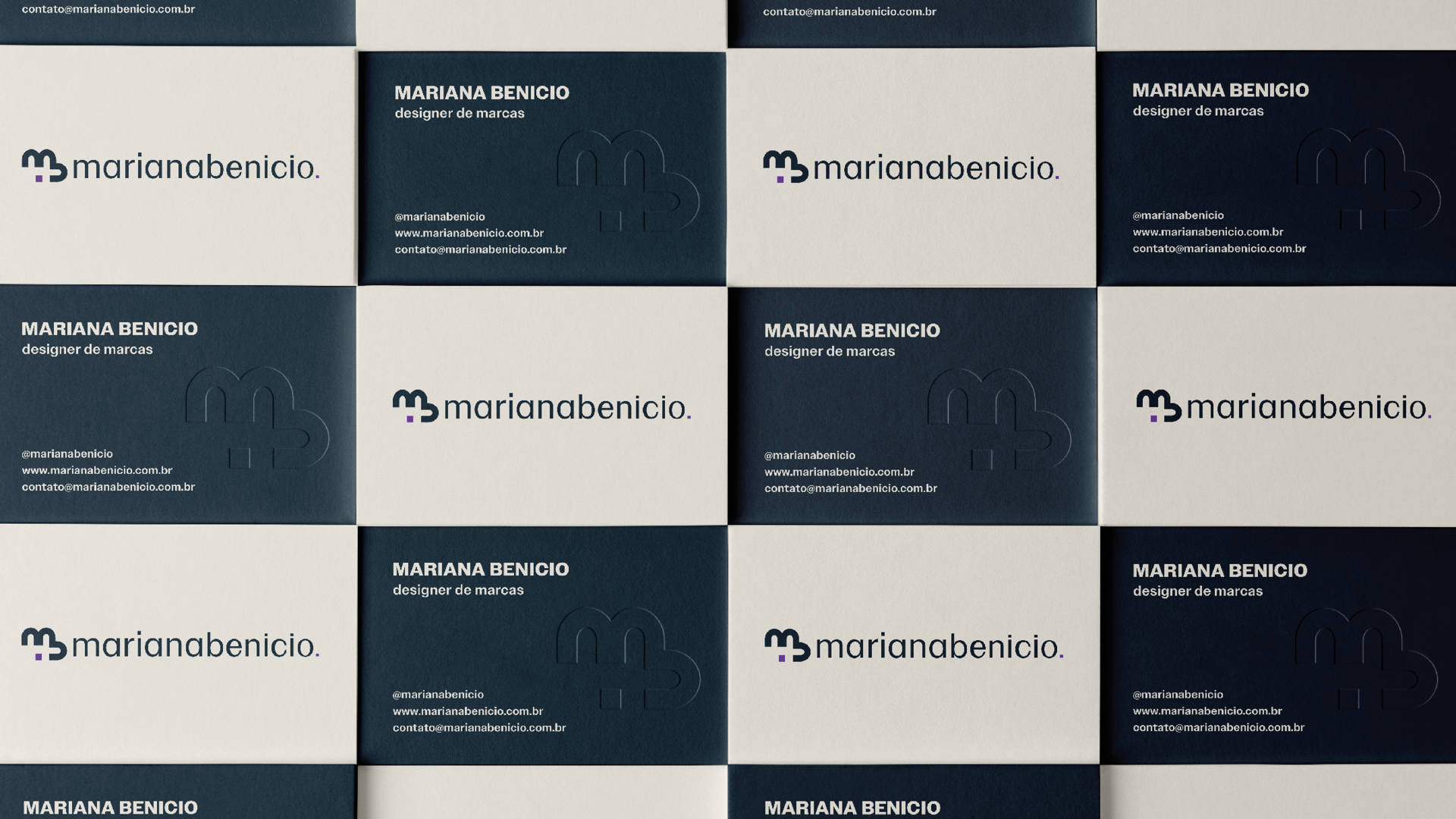 Olá! Meu nome é Mariana Benicio, sou especialista em design de identidades visuais e esta é a minha marca pessoal. Até mesmo quem cria marcas precisa de sua própria face. Por isso, o principal objetivo deste projeto é proporcionar unidade visual na experiência de meus clientes e colaboradores, e nos meus pontos de contato com os mesmos.